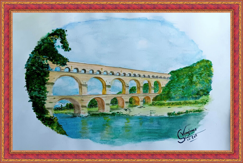 Ce monument du génie romain, âgé de plus de deux mille ans m’a toujours pris au tripes depuis ma première visite en août 1980. Lors de mes balbutiements d’aquarelliste, j’ai tenté de lui rendre hommage.