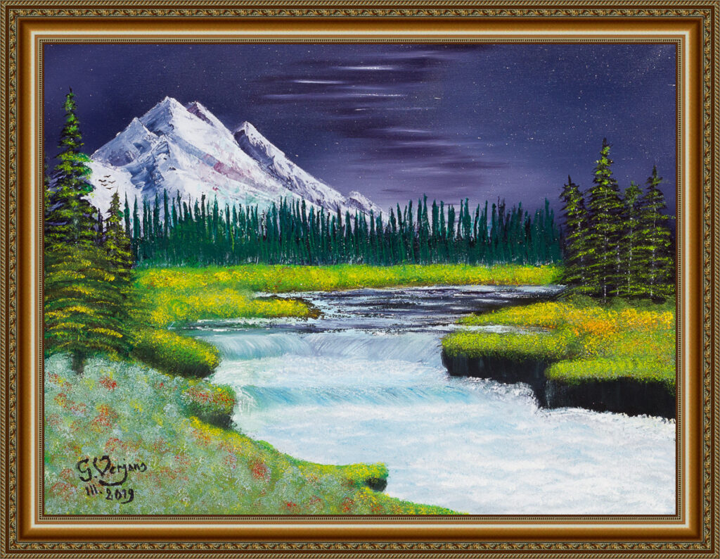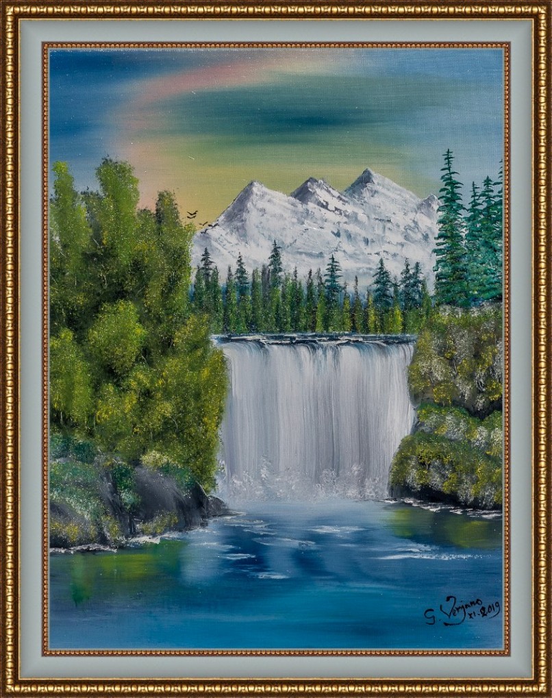 En ce qui me concerne je l’ai découverte à travers des vidéos de Bill Alexander, Bob Ross, et Deny Cloutier, peintre canadien, qui a pour moi, l’avantage de faire ses vidéos en français.