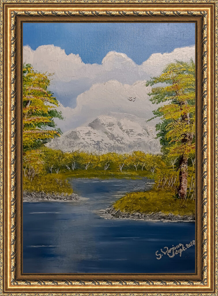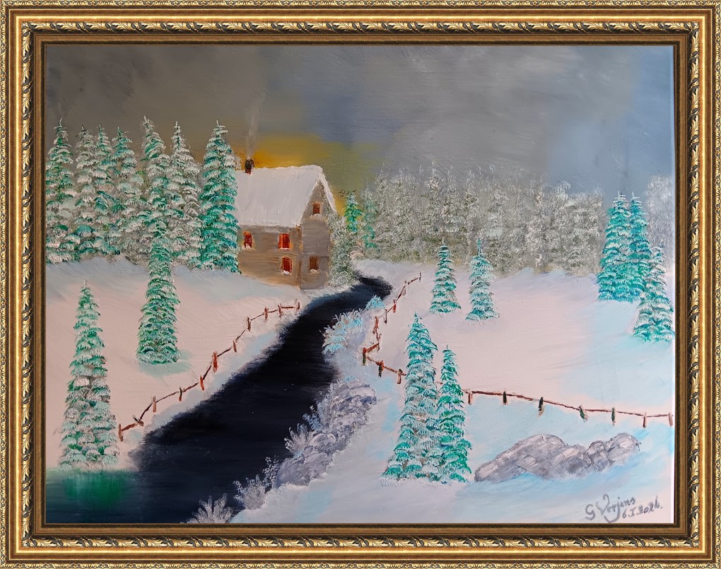 D’après une peinture de Zeljko Vertelj, peintre à la bouche.                                       Toile pur lin 40 x 50 : 450 gr M² épaisseur 20mm. Prix : 210,00€